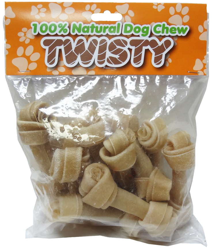 Twisty 10 Pack 4.5IN Rawhide Knot Bones (6 Units)