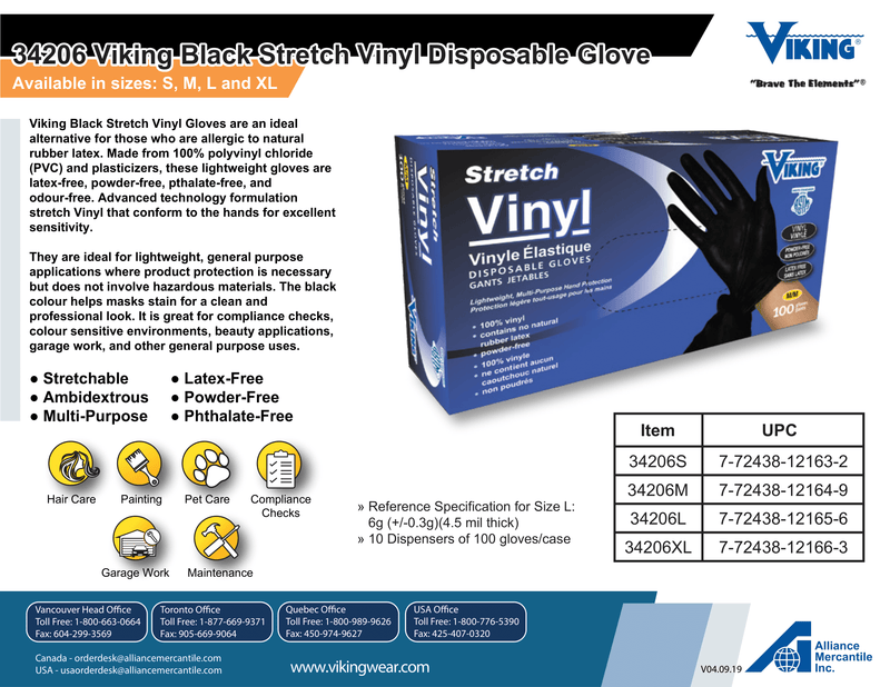 Viking® Phthalate-Free Stretch Vinyl Disposable Gloves - 100 Pack [10 Boxes]